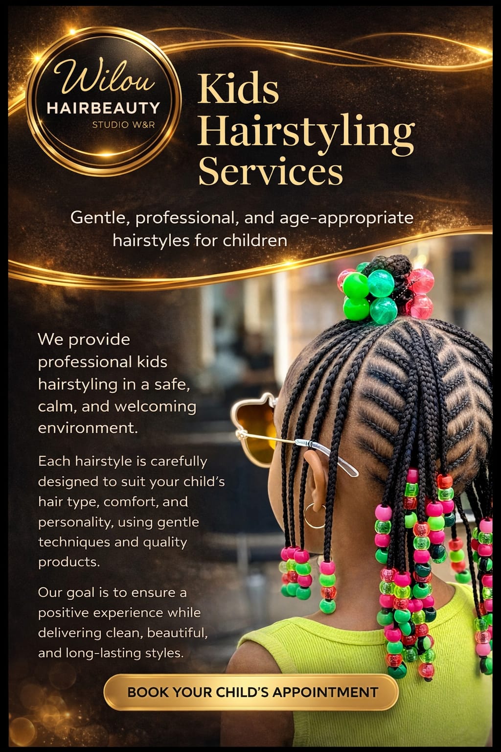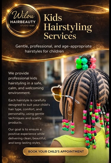 A selection of beautifully crafted kids hairstyles, showcasing clean braiding, creative designs, and joyful moments.