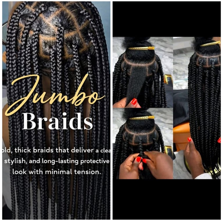 Bold, thick braids that deliver a clean, stylish, and long-lasting protective look with minimal tension
