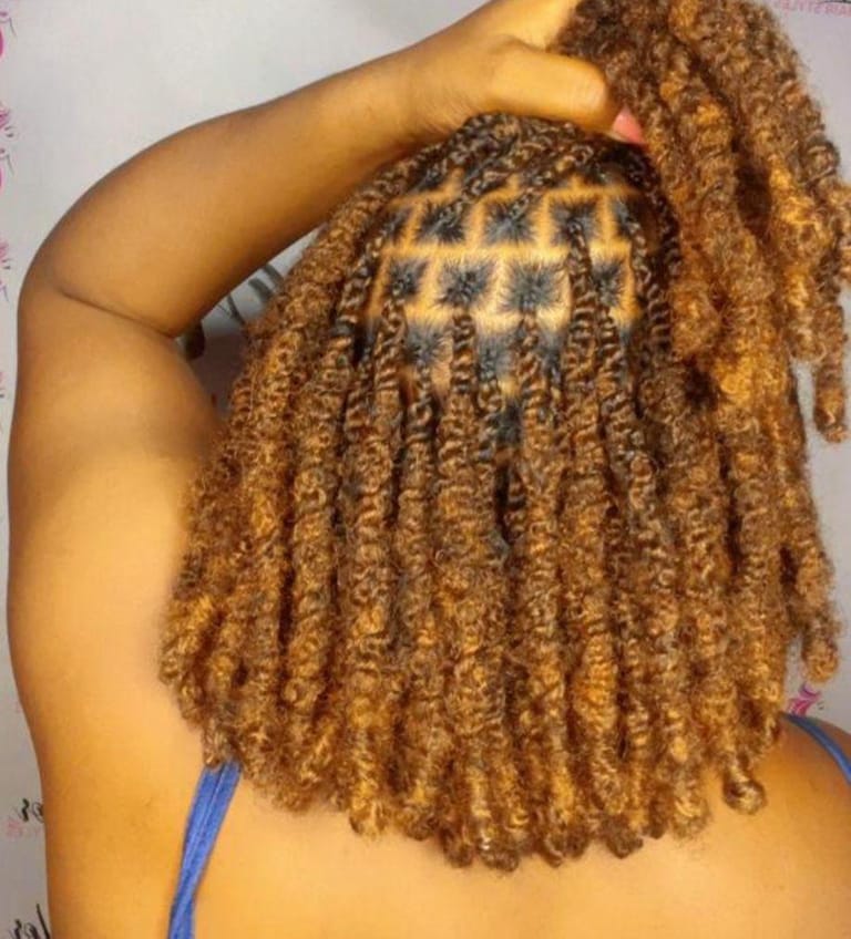 Coco Twist is a soft, lightweight, and voluminous hairstyle featuring tight, springy curls that create a natural and lively look. The roots are neatly parted and well-installed, while the curls add texture, movement, and fullness for a beautiful finish.